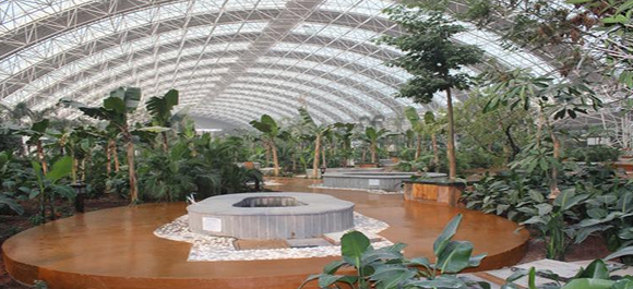 歡樂水王國(guó)坐落于度假區(qū)的西側(cè),室內(nèi)占地面積250000平方米,由設(shè)計(jì)奧運(yùn)水立方場(chǎng)館的加拿大著名的FORREC公司提綱設(shè)計(jì),是目前中國(guó)最大的室內(nèi)水上游樂項(xiàng)目,可同時(shí)容納30000人嬉戲.