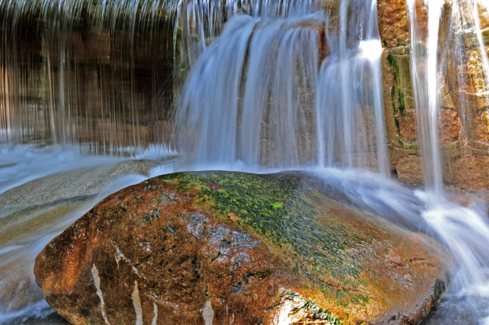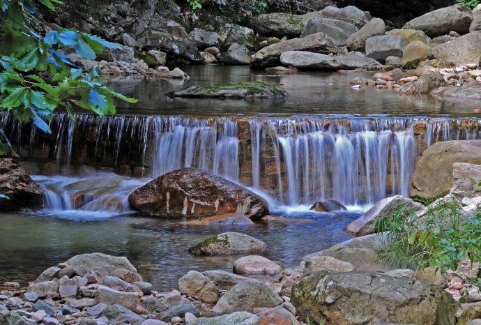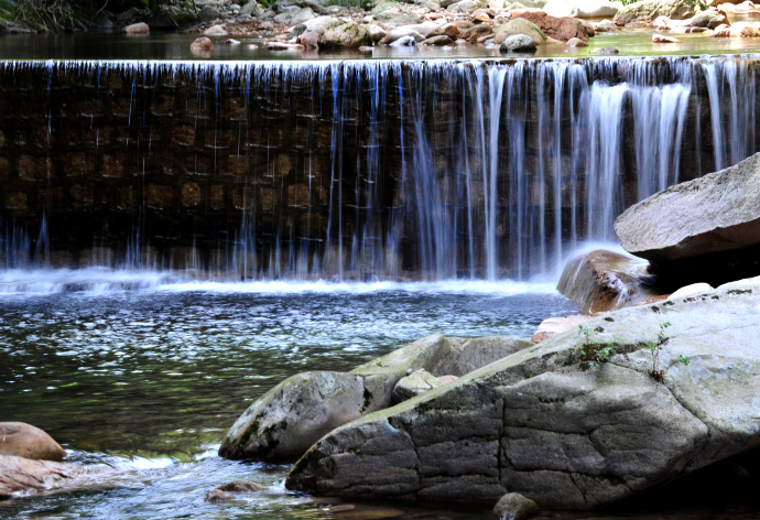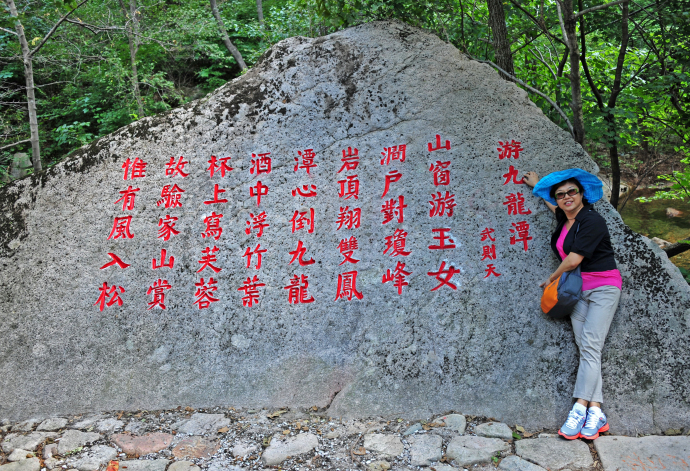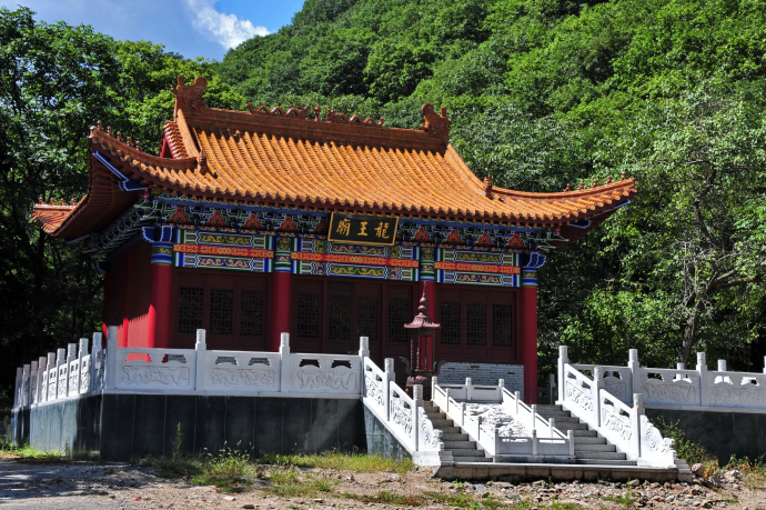 十八灣最精彩的景觀當屬龍?zhí)稙沉恕}執(zhí)短睹娉侍易有螤睿吨袨榫扌褪瘞褪祝狭髦畯膷{谷石縫涌注桃蒂,在潭中旋轉(zhuǎn)片刻,然后自桃尖瀉出,早年稱潭深莫測,現(xiàn)今經(jīng)過人工儀器測出,潭水深8.2米,潭面60多平方米,積水近500立方米;潭水碧綠,清澈見底,晴天有雙月映出奇觀,據(jù)說衛(wèi)星空中曾見到此地有一股紫氣沖天,乃吉祥之兆;潭水甘冽異常,含有多種元素,人飲用益處頗多,用于烹茶,芳香可口。東西兩側(cè)層巖疊障,高15米以上,好似兩門相對,掩護深潭,十分壯觀。